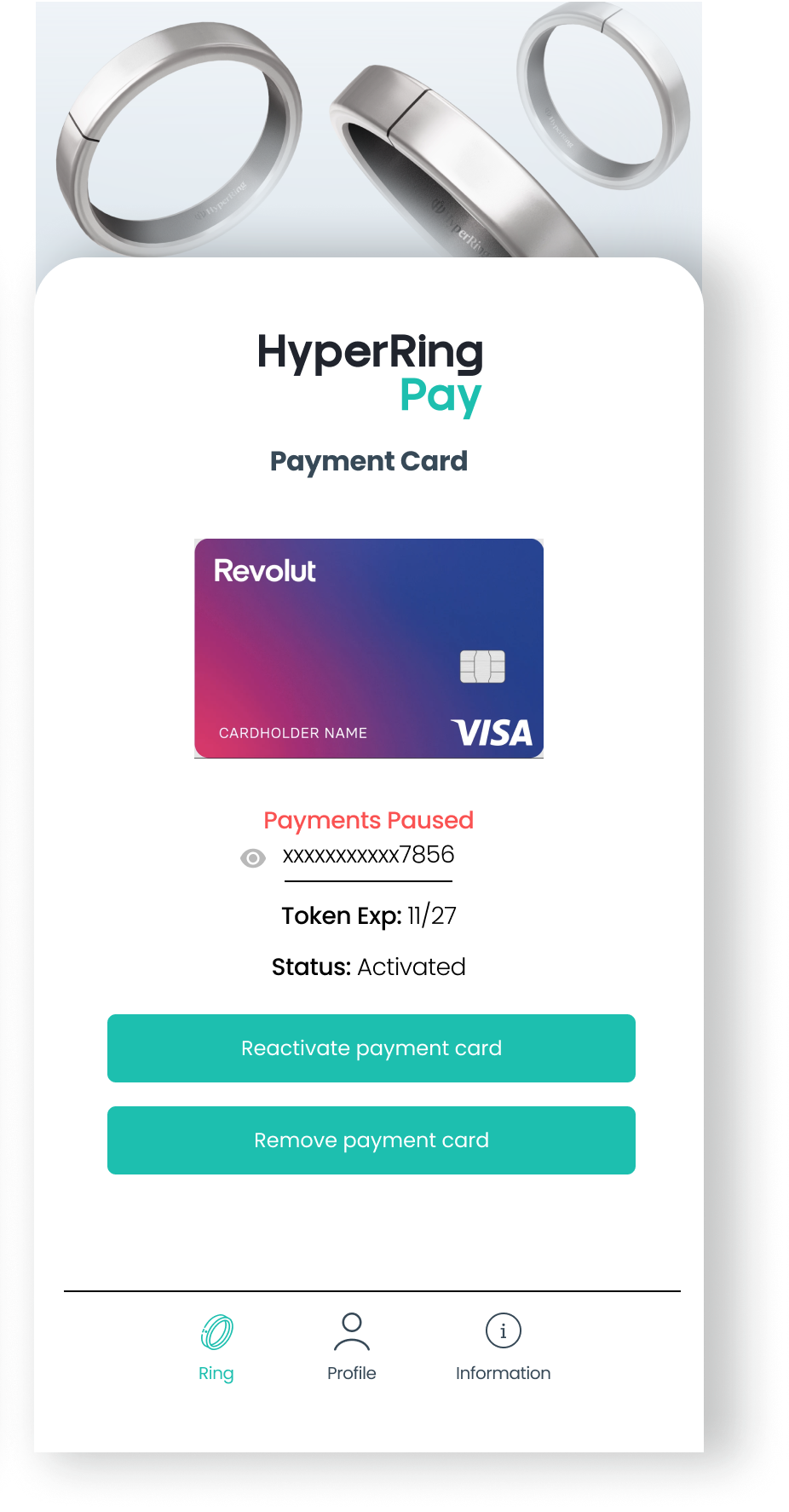 The reactivation process typically takes just a few seconds. Once completed, your HyperRing will immediately be ready to make contactless payments again.
